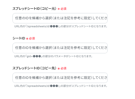 シートIDは、コピー先のGoogle スプレッドシートから取得しましょう。