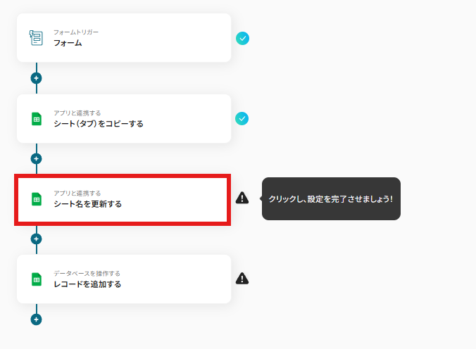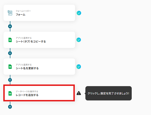 最後にコピーしたGoogle スプレッドシートにレコードを追加し、内容を更新するための設定を行います。