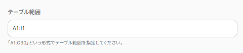 テーブル範囲にはGoogle スプレッドシートのヘッダの範囲を入力しましょう。