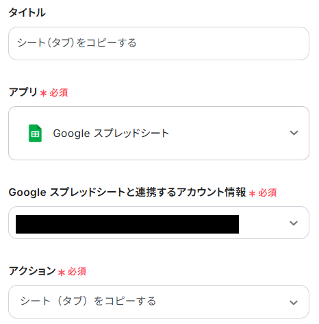 アクションは、テンプレート通りに「シート(タブ)をコピーする」のままで大丈夫です。