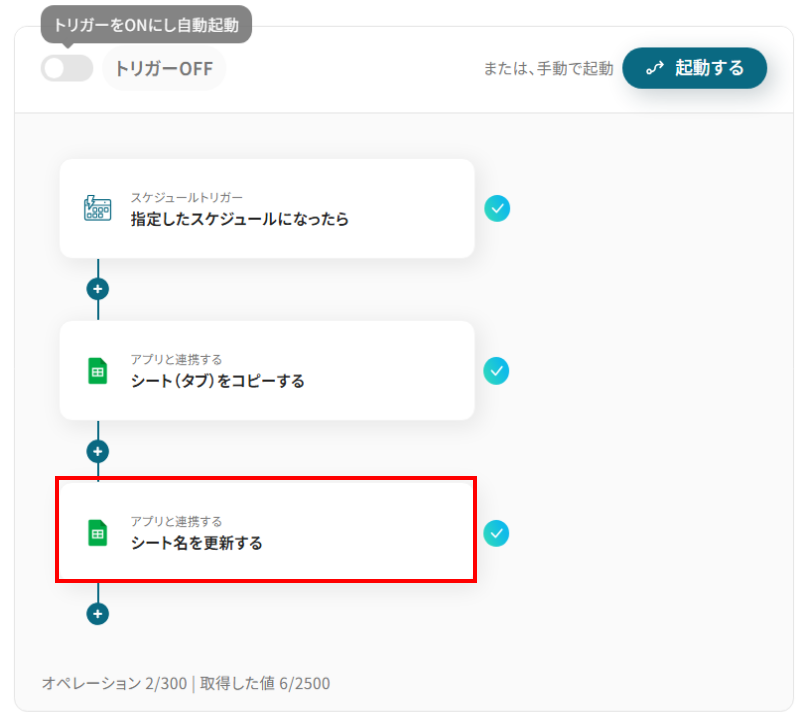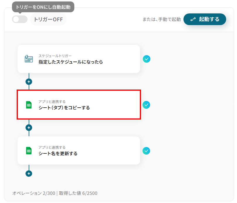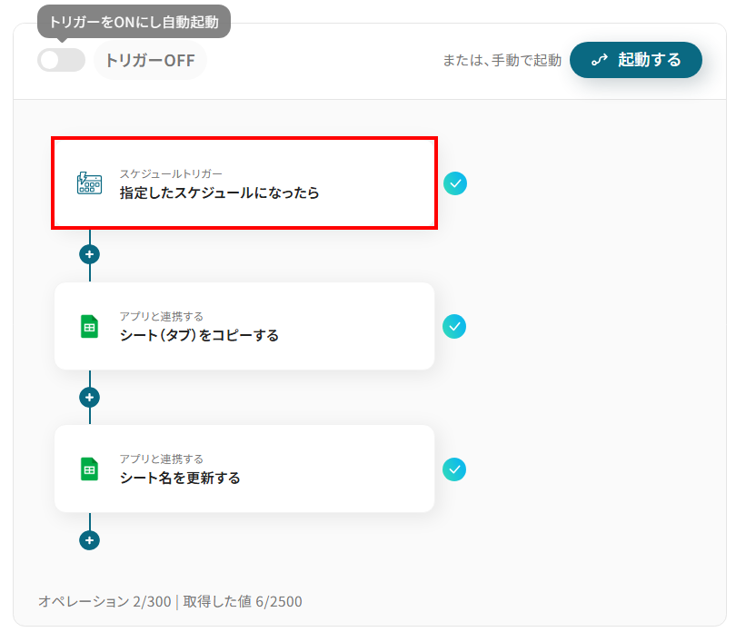 それではここから代表的な例として、指定日時になったら、Google スプレッドシートの特定タブを別のシートに自動でコピーするフローを解説していきます!