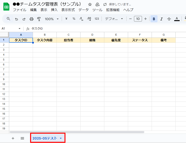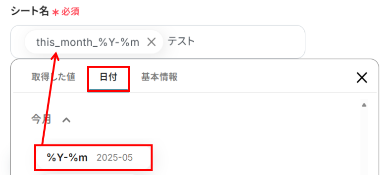 入力が完了したら、「テスト」を実行して、Google スプレッドシートのシート名が更新されているか確認しましょう!