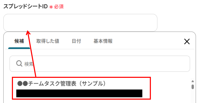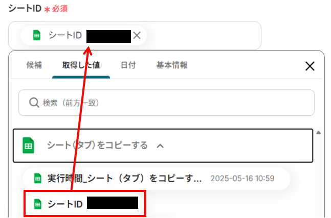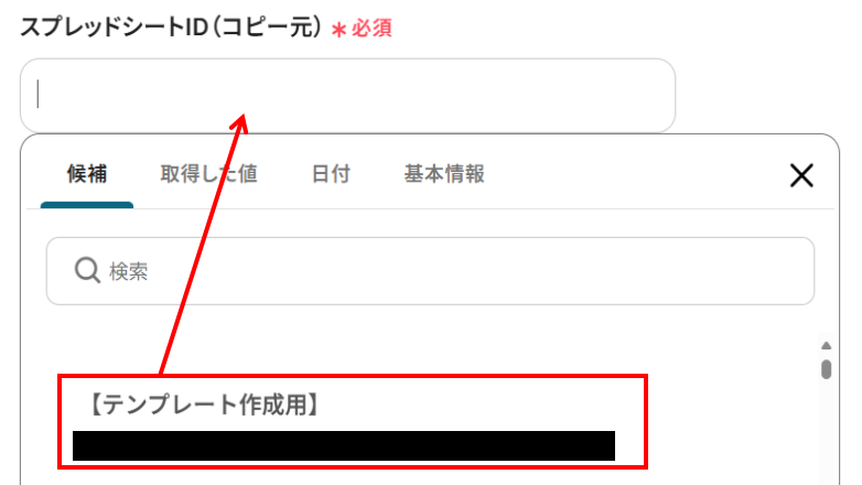 3.ここでは、シート名を変更したいコピー先のGoogle スプレッドシートを設定します。