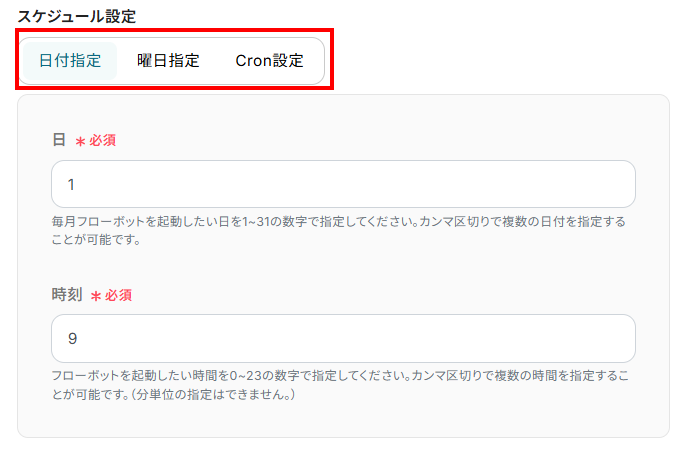 2.ここでは、トリガーとなる時間や曜日などを設定できます。