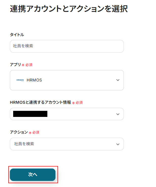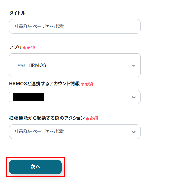 Notionに登録された従業員情報をHRMOSに登録するフローです。