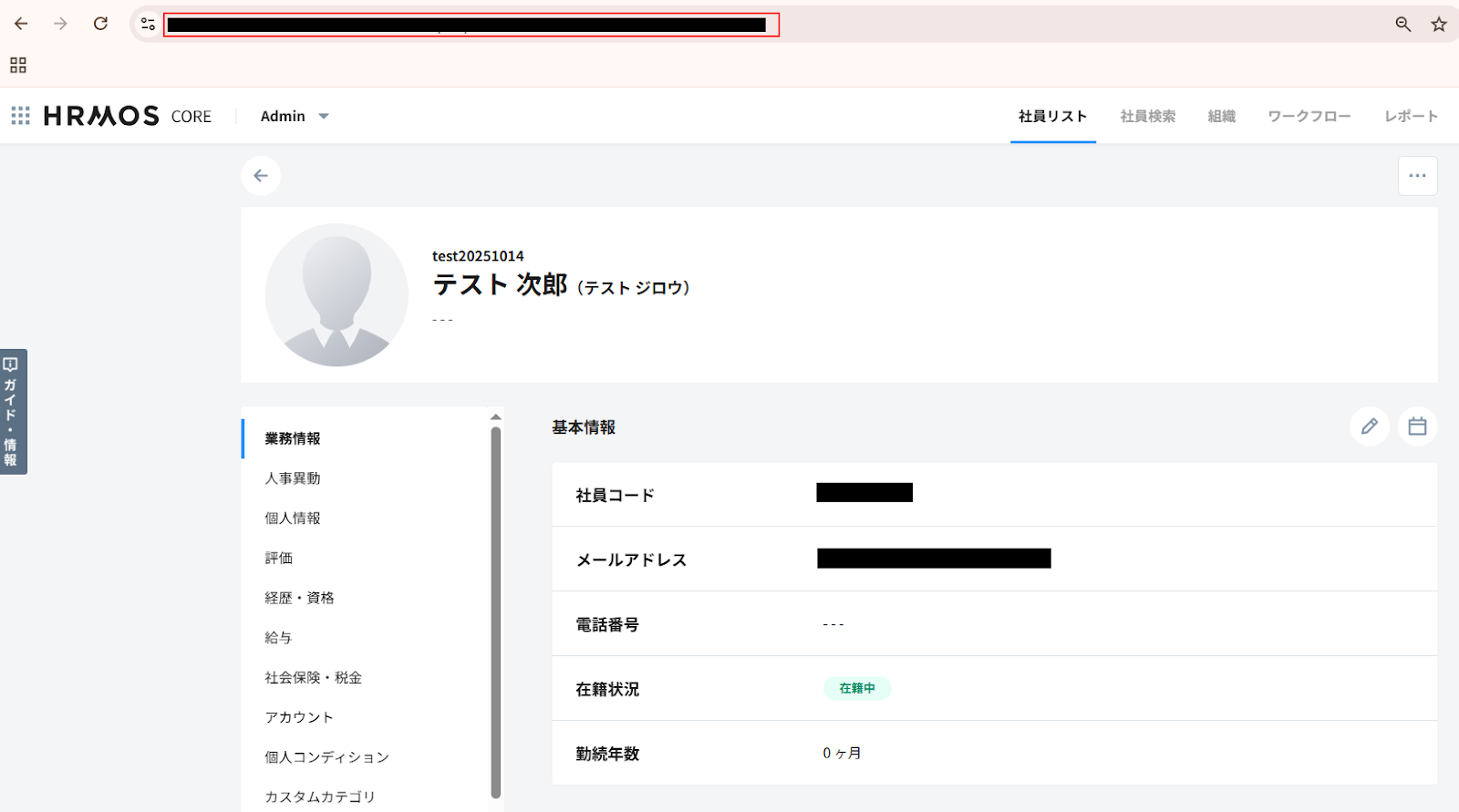 次に、HRMOSに登録している任意の社員詳細ページを開き、URLをコピーします。