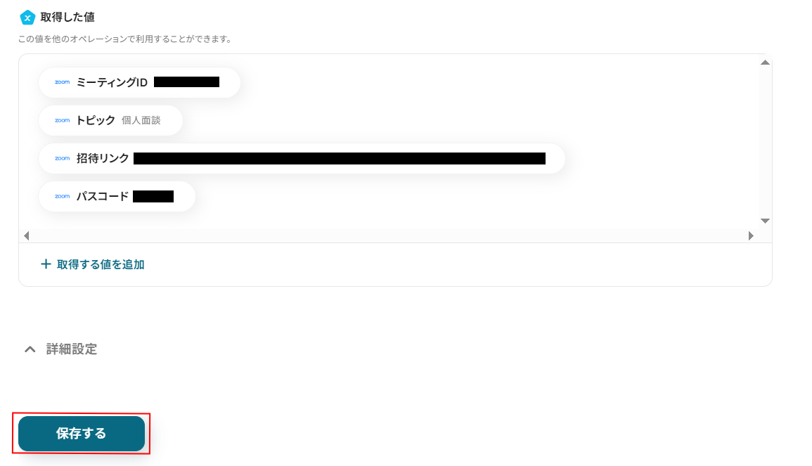 ・Zoomのプランによって利用できるアクションとそうでないアクションがあるため、ご注意ください。