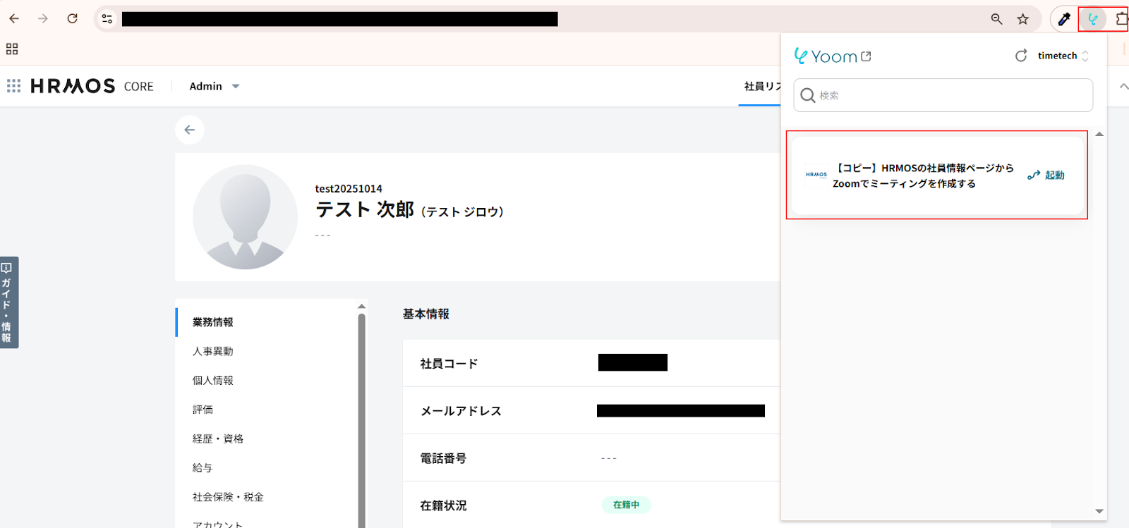 HRMOSの社員情報ページからZoomでミーティングを作成する