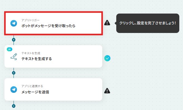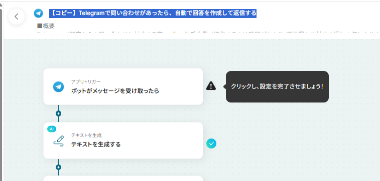 それではここから代表的な例として、Telegramで問い合わせがあった際に、AIが自動で回答を作成して返信するフローを解説していきます!