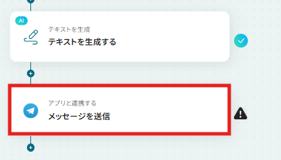 - 最後に、オペレーションでTelegramを選択し、「メッセージを送信」アクションを設定し、AIが生成したテキストを送信します。