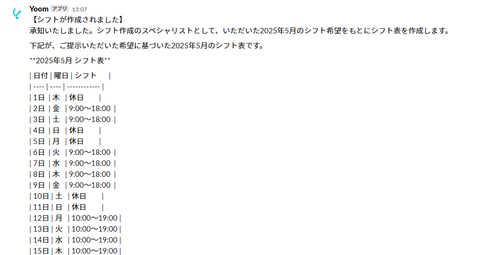 チャットツールを起点にAIでシフト表を作成し通知する