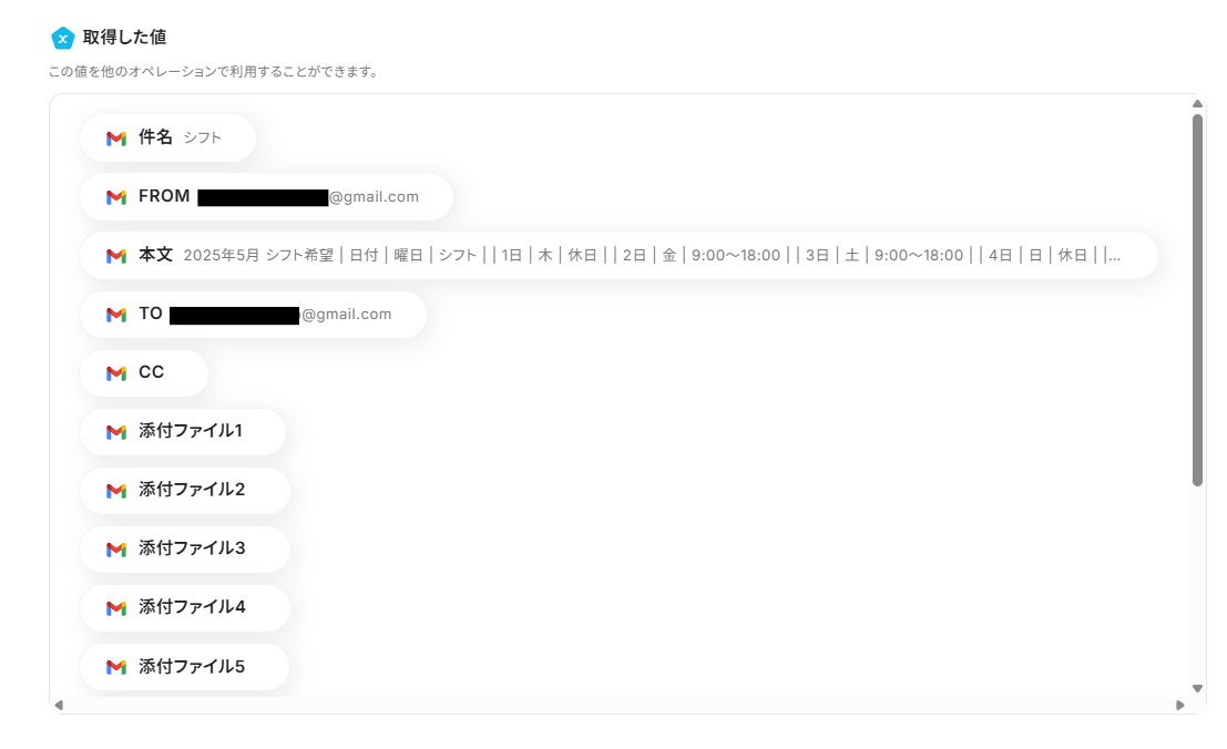 それではここから代表的な例として、Gmailで受信したシフト希望のメール内容をもとに、AIがシフト表を自動で作成し、完成したシフト表をSlackで関係者に通知するフローを解説していきます!