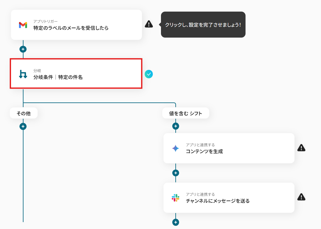 1.分岐「分岐条件|特定の件名」をクリックしましょう。