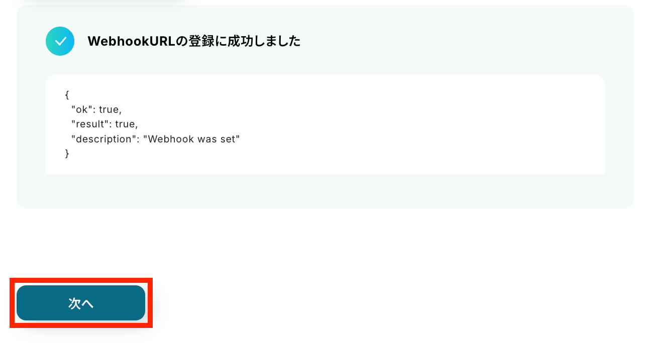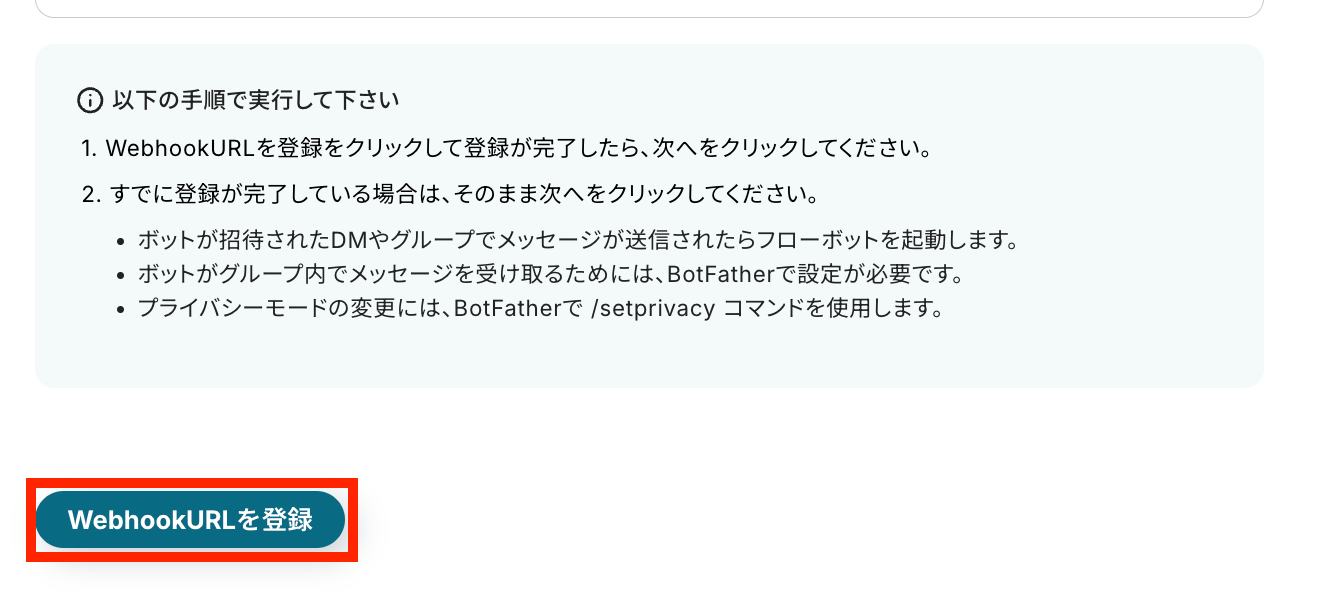 WebhookURLの登録を行います。「WebhookURLを登録」をクリックしましょう!