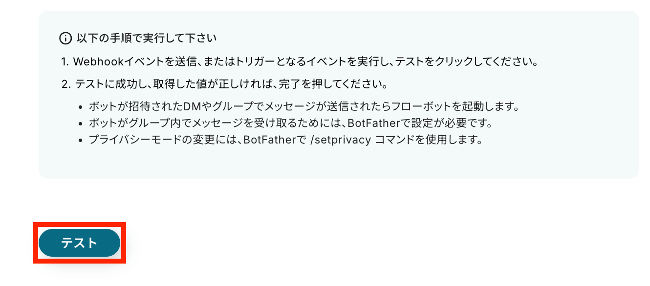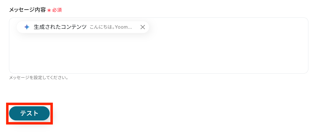 メッセージ内容の設定が終了したら、テストを実行して下さい。