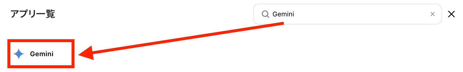 検索欄にGeminiと記入して、出てきたアイコンをクリックします。