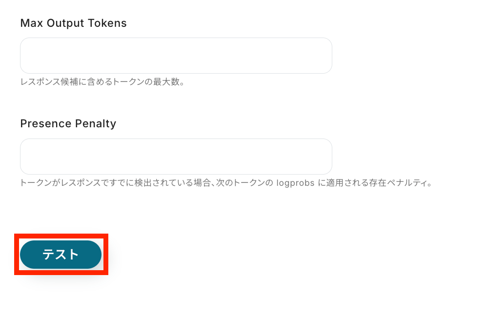 その他も任意で設定して、設定が完了したら「テスト」ボタンをクリックしましょう。