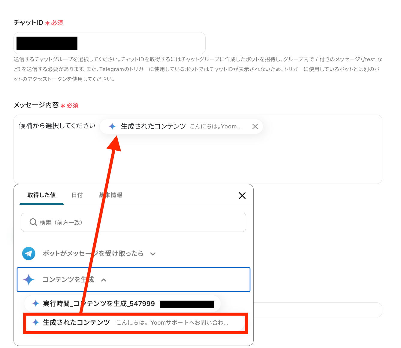 - Telegramの「メッセージを送信」アクションでは、メッセージの送信先となるチャットIDを任意で設定してください。
