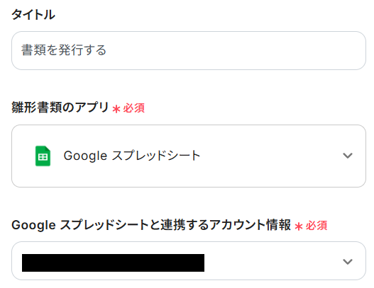 2.書類の雛形となるGoogle スプレッドシートの設定と、出来上がった書類の格納先を設定します。