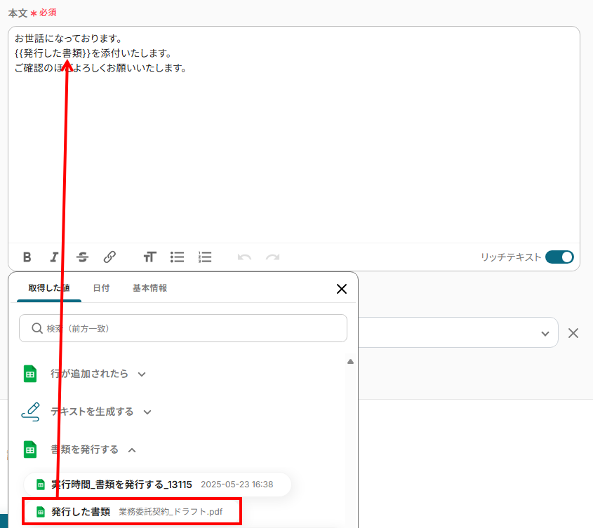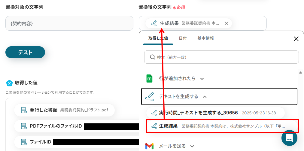 受信メールを基点に、AIで契約書を作成しメールで送信する