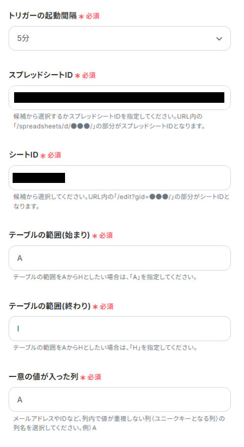 3.ここでは、トリガーとなるGoogle スプレッドシートの設定をしましょう。