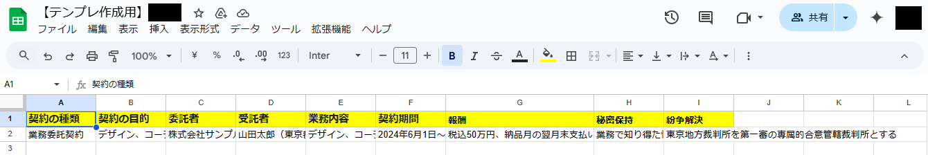 1.つぎに、Google スプレッドシートの雛形を用いて契約書を作成する設定をしましょう。