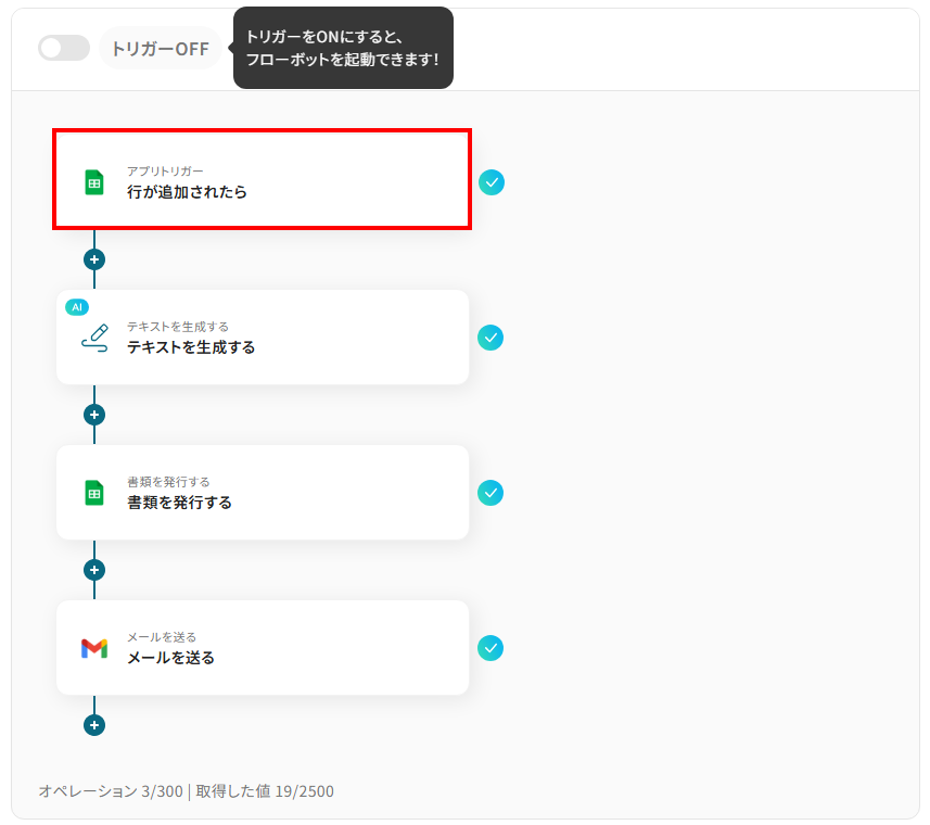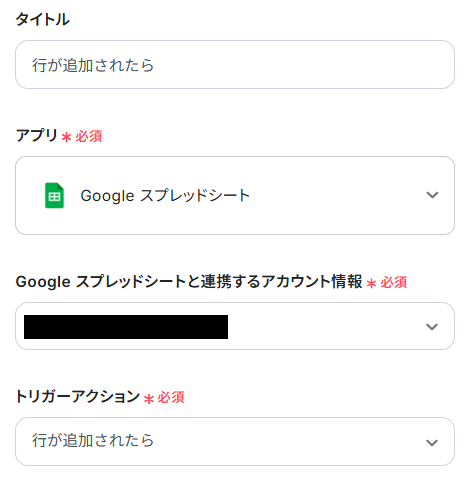 トリガーアクションは、テンプレート通りに「行が追加されたら」のままで大丈夫です。