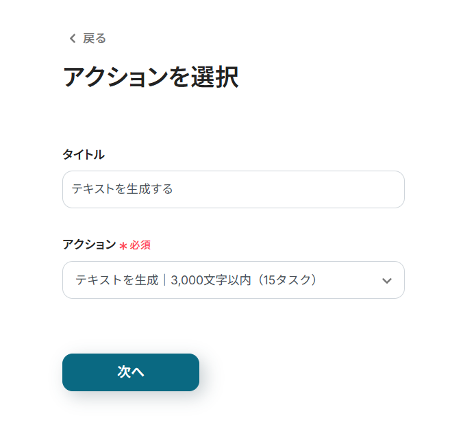 フォームタイトルと同様に、テキスト生成アクションのタイトルが変化します。