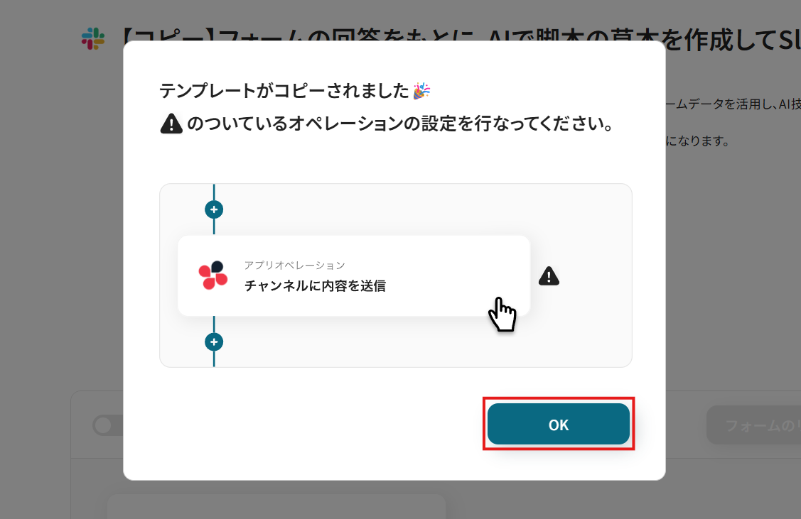 「OK」をクリックして、フローの設定に進みましょう。