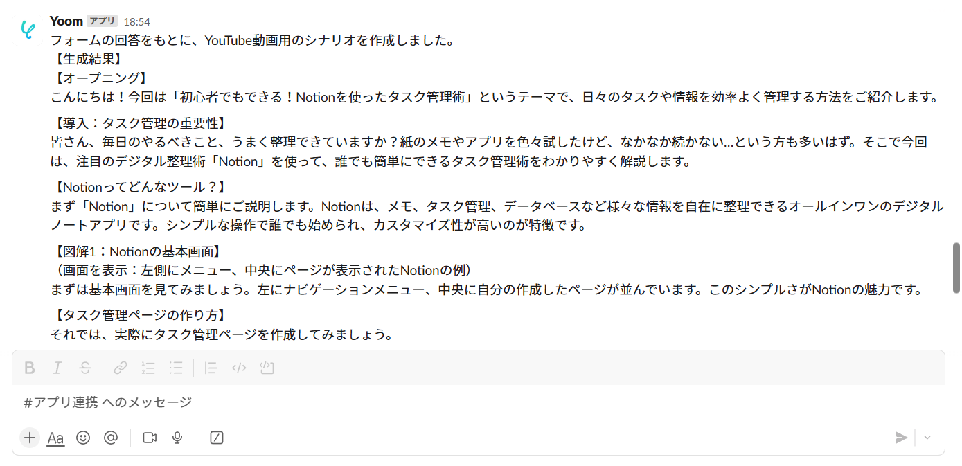 フォームの入力内容をもとにAIで脚本を作成し、コミュニケーションツールへ通知する