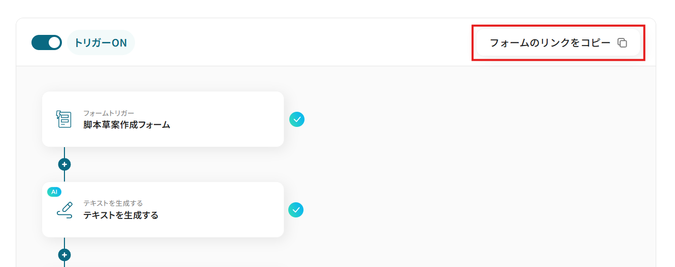 トリガーをONにすると、作成したフォームのリンクがコピーできるようになります。