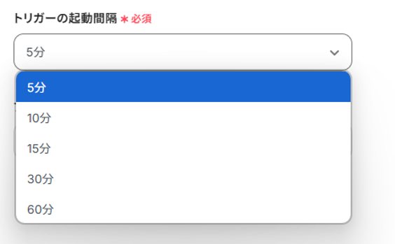 トリガーの起動タイミングは、5分、10分、15分、30分、60分のいずれかで設定できます!