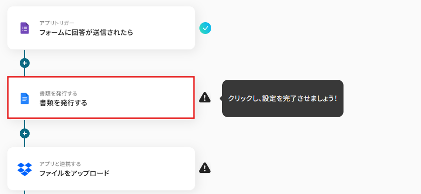 それではここから代表的な例として、Googleフォームで回答が送信された際に、その内容に基づいて資料を自動で作成し、作成された資料をDropboxの指定フォルダに格納するフローを解説していきます!