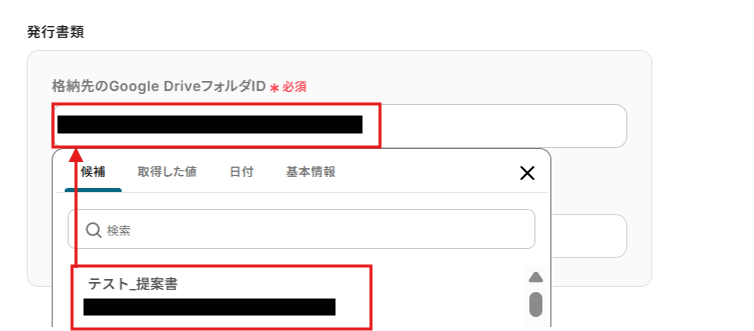 格納先のGoogle DriveファイルIDを候補から選択します。