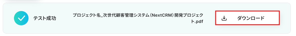 テストが成功したら、ダウンロードを行って書類を確認します。