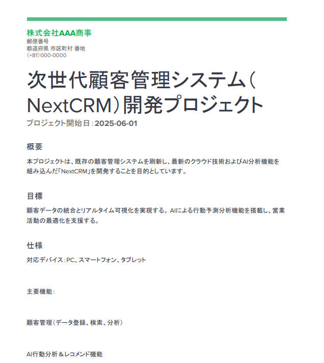 これにより、ドキュメント作成の自動化が実現し、業務の効率化が期待できます。