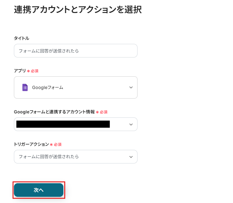 以下の連携するアカウント情報を確認して、次へ進んで下さい。