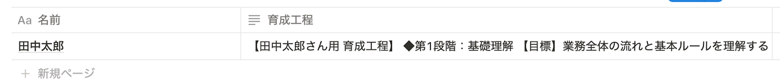 先ほどNotionで設定したデータベースとは別に、育成プランを追加するデータベースを用意しましょう。
