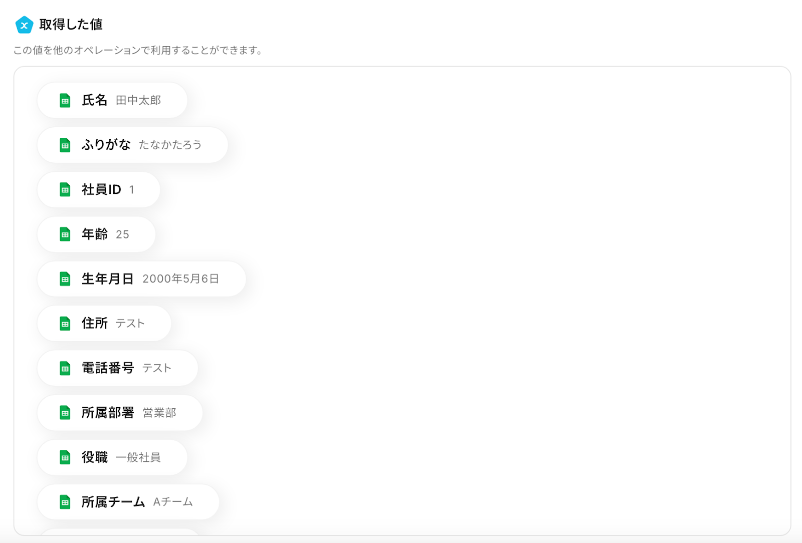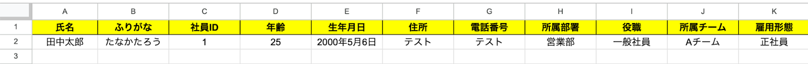 ※Google スプレッドシート上で追加が出来ていないとテストは成功しません。ご注意ください!