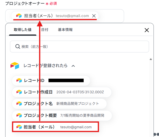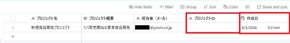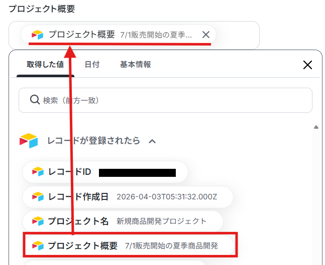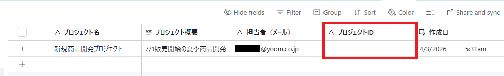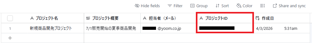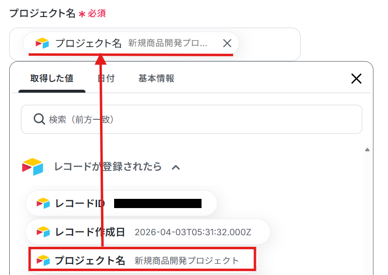 プロジェクト名は、Airtableに登録されたレコードの「プロジェクト名」が自動で引用されるようにデフォルトで設定されています。