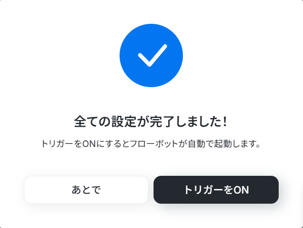 「トリガーをON」ボタンをクリックしフローを起動させましょう。