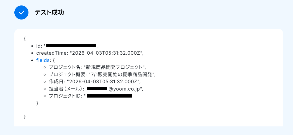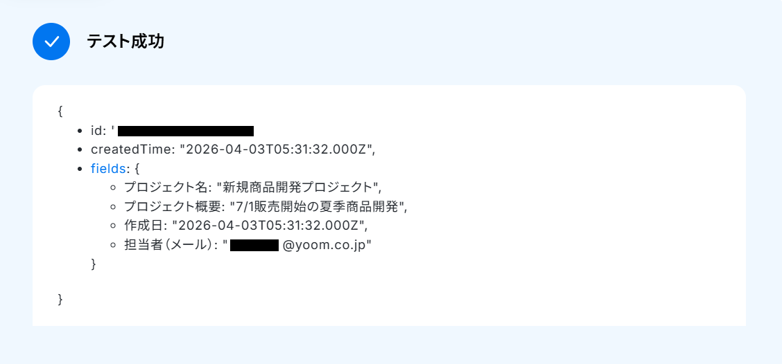 ・AirtableのアウトプットはJSONPathから取得可能です。取得方法は下記をご参照ください。