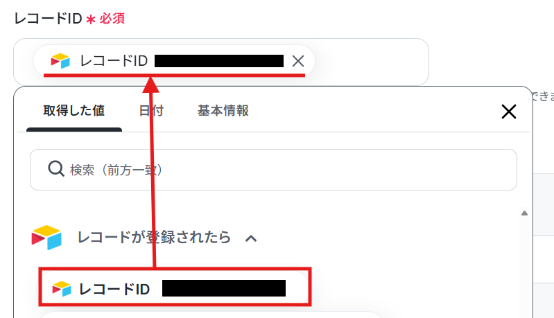 レコードIDもデフォルトで取得した値が設定されているため、確認し進みましょう。