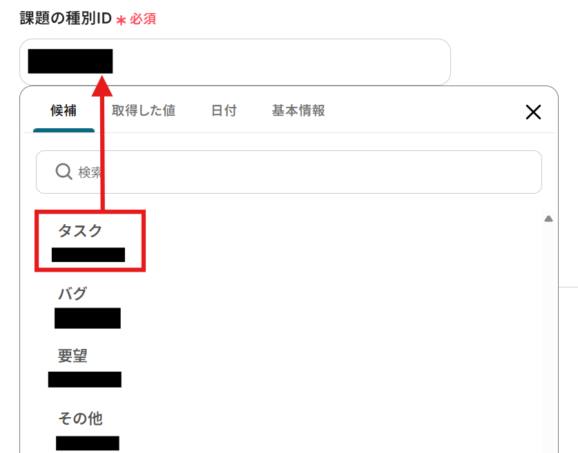 次に、「課題の種目ID」を候補から選択してください。 該当するIDを選択してくださいね!