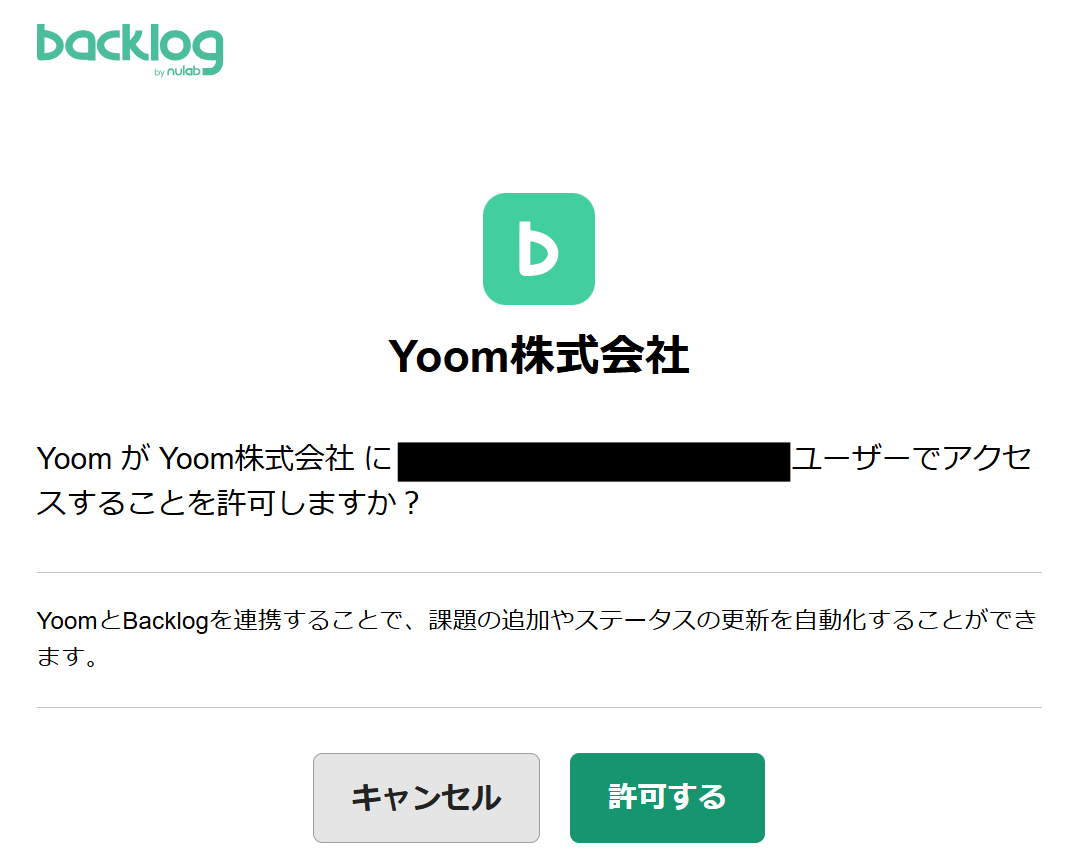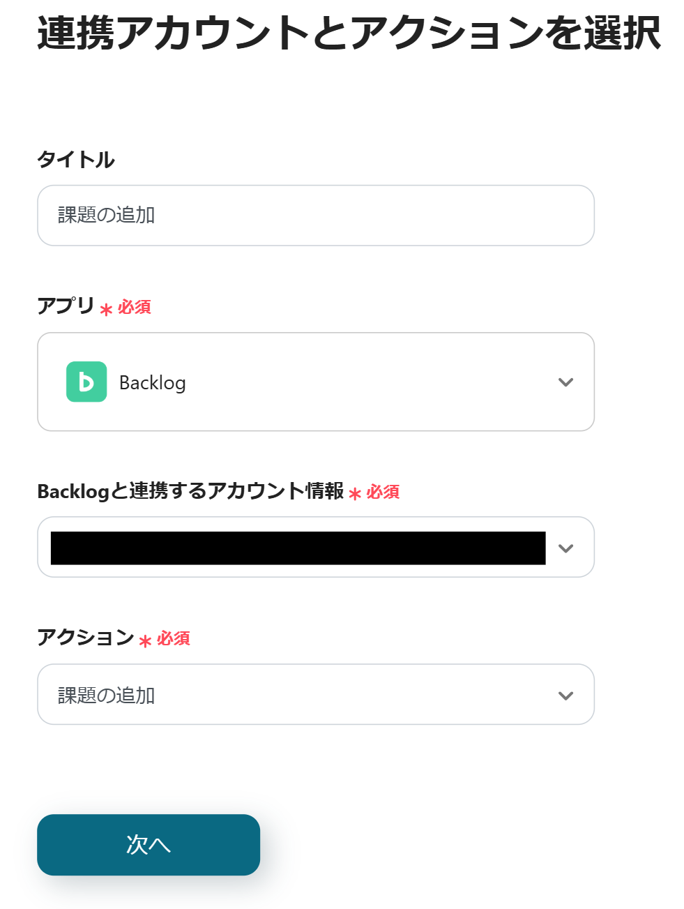 続いて、Backlogに課題を追加する設定を行うため、以下の赤枠をクリックします。