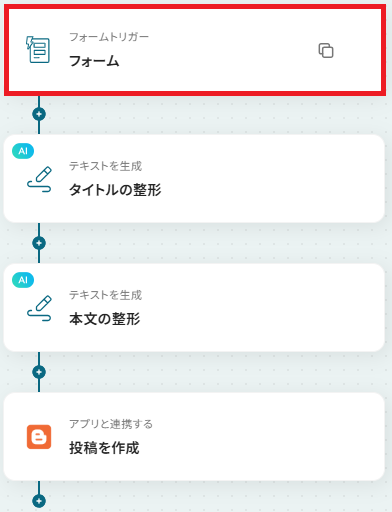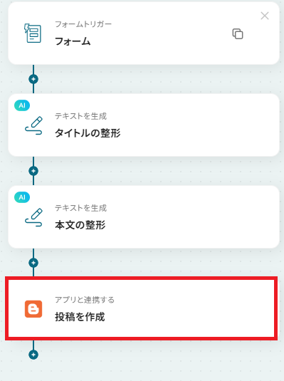 このワークフローは、フォーム送信をトリガーとしてAIが投稿内容を整形し、Bloggerのページを自動で作成するため、コンテンツ更新の効率を高めることができます。