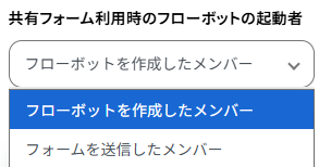 「共有フォーム利用時のフローボットの起動者」は、以下の二つから選べます。