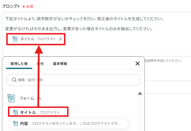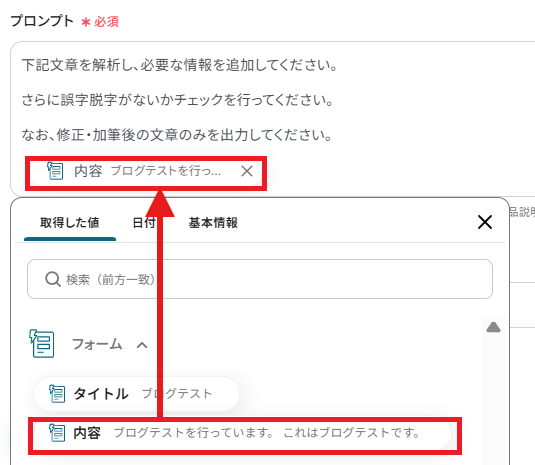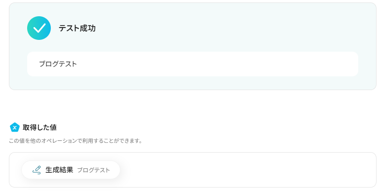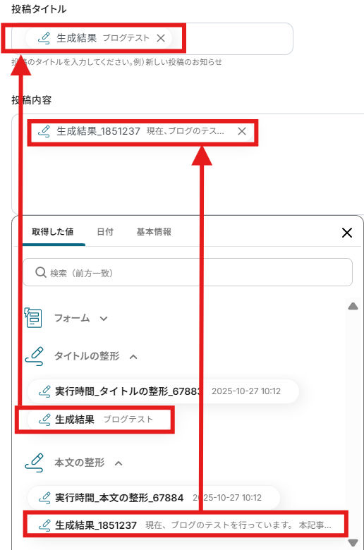 取得した値を利用することで、前段で生成した最新の値を自動で引用できます。