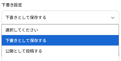 また、今回は突然公開される設定ではなく、「下書きとして保存する」にしました。