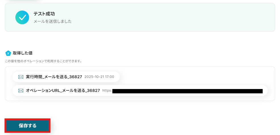 確認できたら、Yoomの画面に戻り「保存する」をクリックします。